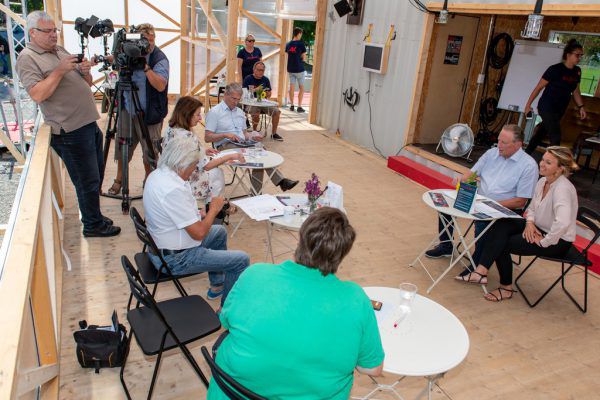 Am Mittwochabend hatte der Wiener Liedermacher Voodoo Jürgens aufgespielt. Am Donnerstagvormittag diente der umgebaute Schiffscontainer als Café. Hubert Hämmerle, Präsident der Vorarlberger Arbeiterkammer, und Organisatorin Eva King erläuterten dort im Rahmen einer Pressekon