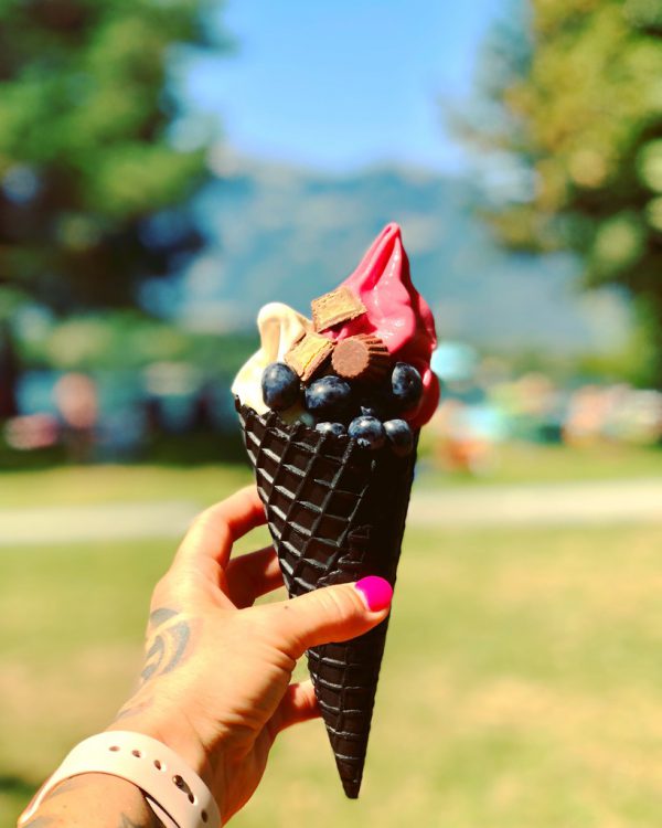Markenzeichen: Buntes Eis in schwarzer Tüte