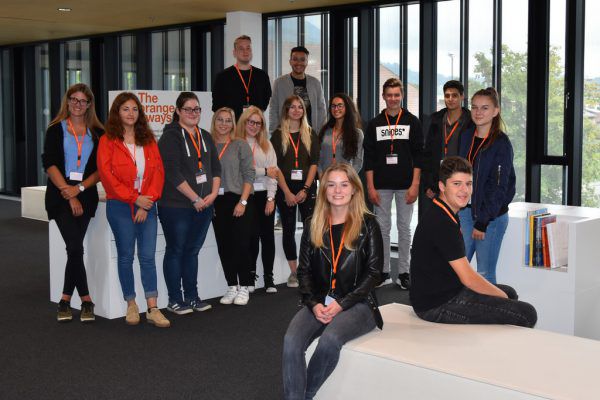 Insgesamt 68 junge Männer und Frauen starteten kürzlich ihre berufliche Laufbahn bei Gebrüder Weiss in Österreich, Deutschland und der Schweiz – im Bild die neuen Lehrlinge aus Vorarlberg im Stammsitz in Lauterach. Das Unternehmen bietet aktuell sechs verschiedene Lehrberufe an: Spe