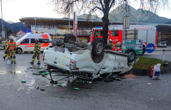 Ein Forstauto der Stadt Hohenems, das letzte Woche ebendort gestohlen wurde, ist Sonntagfrüh im Tiroler Ort Reutte aufgetaucht – leider nur als total beschädigter Unfallwagen. Laut Polizei war der alkoholisierte Lenker (19) mit überhöhtem Tempo in einen Kreisverkehr eingefahren