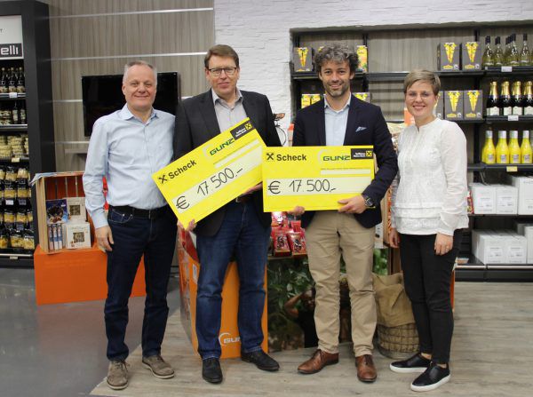 Insgesamt 100.000 Euro an Spenden sind heuer wieder aus dem Sozialfonds der Gunz Warenhandels GmbH in Mäder in verschiedene Projekte im Land geflossen. Darüber haben die Verantwortlichen des Unternehmens in einer Aussendung informiert. Im Bild: Werner (l.) und Simone Gunz bei der