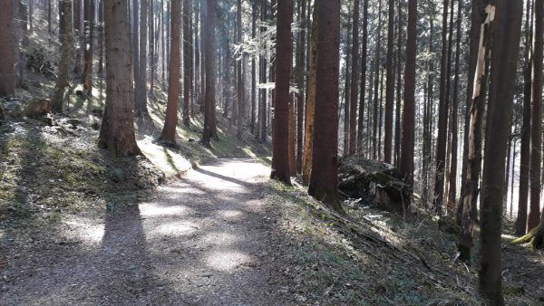Die Geschichtenerzählerin Hertha Glück wandert ab Millrütte zur Emser Hütte und steigt durch den Wald zur Luchsfalle ab. Weiters führt ihr Weg über die Gsohlalpe zum Götznerberg.