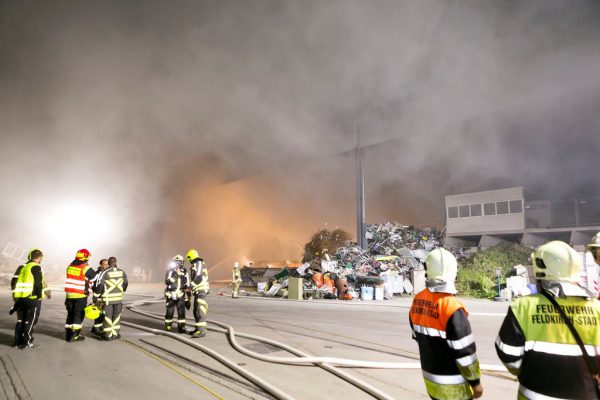 Das Mülllager des Recyclers Loacker in Feldkirch-Gisingen ist in der Nacht auf Freitag in Flammen gestanden. Die Brandermittler gehen von einer Selbstentündung aus. Die Löscharbeiten dauerten bis am Vormittag. Die Halle wurde schwer beschädigt. FW Rankweil/facebook