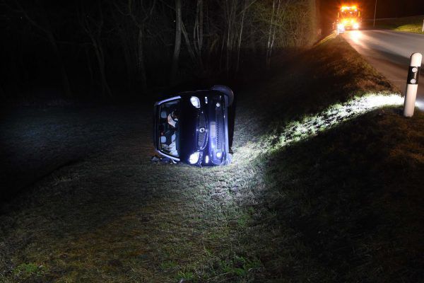 Ein 73-jähriger Autofahrer kam gestern bei einem Unfall im benachbarten Diepoldsau (CH) glimpflich davon. Das Auto stieß zuerst gegen eine Straßenlaterne, überschlug sich und rutschte auf dem Dach über eine Böschung. Der Autofahrer blieb unverletzt, der Sachschaden beträgt
