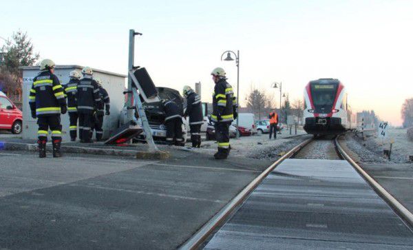 Lenkerin dürfte vermutlich das Rotlicht am Bahnübergang übersehen haben.