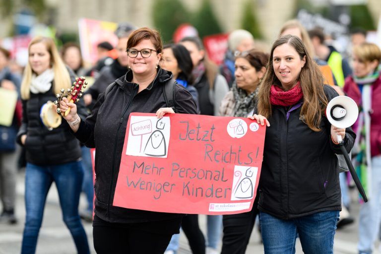 Tausende Mitarbeitende der Wiener privaten und städtischen Kindergärten, Horte und schulischen Freizeitbetreuung haben gestern bei einer Demonstration bessere Rahmenbedingungen eingefordert. Zahlreiche Kindergärten blieben deswegen geschlossen. apa