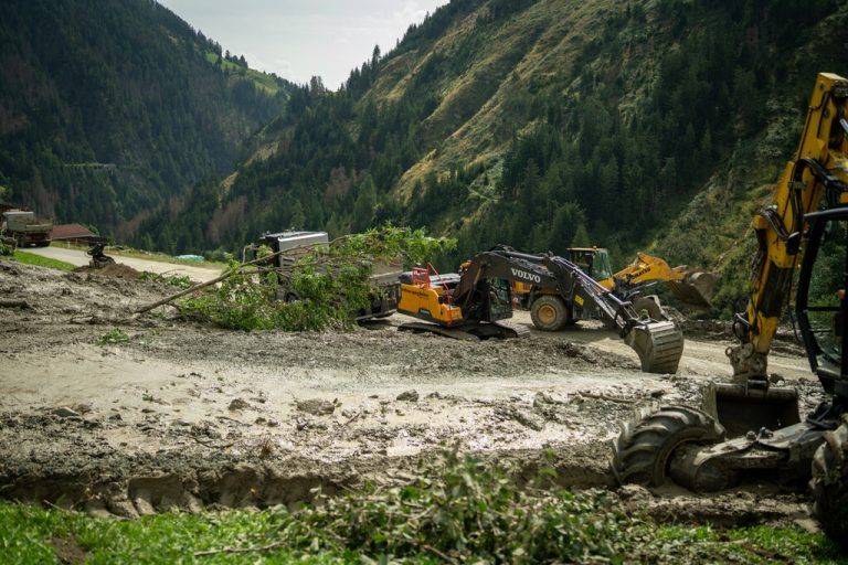 Unwetter mit Starkregen haben in der Osttiroler Gemeinde Prägraten mehrere Murenabgänge und teils auch Verklausungen zur Folge gehabt. Die Virgentalstraße wurde zwischen zwei Ortsteilen auf einer Länge von rund 60 Metern bis zu zwei Meter hoch verschüttet. Prägraten war v