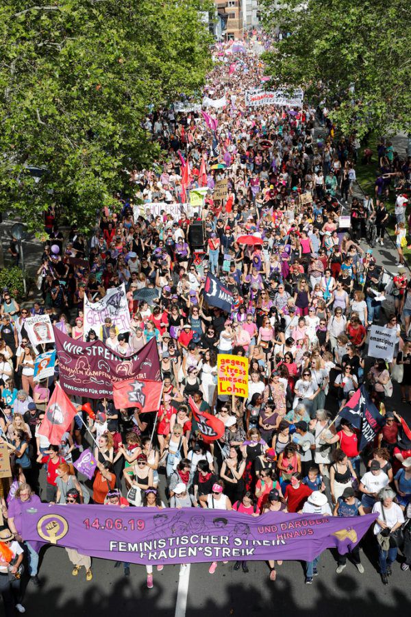 Mehrere Hunderttausend Frauen sind am Freitag in mehreren Schweizer Städten (Foto: Zürich) für mehr Gleichberechtigung auf die Straße gegangen. Sie forderten flexiblere Teilzeitarbeitsmodelle, die Einführung eines Mindestlohns und Null-Toleranz für sexuelle Gewalt.