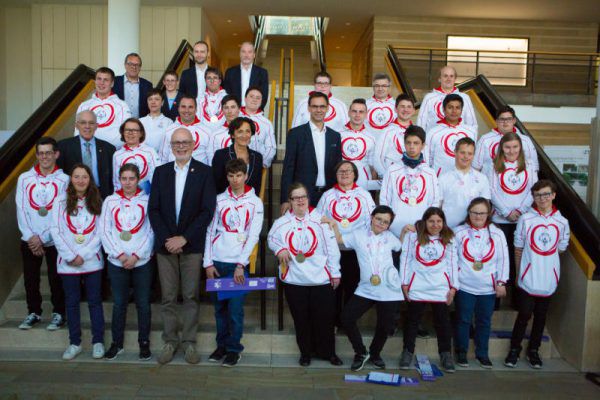 Vorarlbergs Teilnehmer der Special Olympics Weltwinterspiele 2017 wurden gestern im Landhaus in Bregenz von Landeshauptmann Markus Wallner und Sport-Landesrätin Bernadette Mennel ehrenvoll empfangen. Insgesamt 23 Medaillen davon je acht in Gold und Silber sowie sieben in Bronze brachten die S