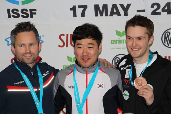 Thomas Mathis (r.) hat sich bei seinem Lieblingswettkampf in München den dritten Platz im Kleinkaliber-Liegendbewerb gesichert. Der Hohenemser, der 2013 in München bereits Zweiter geworden war, zeigte sich zufrieden: „Ich bin überglücklich! Dass es in den vergangenen Jahren oft