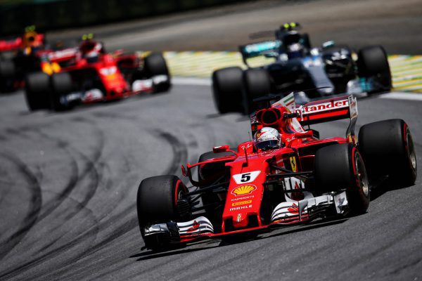 Durch seinen Sieg beim GP von Brasilien ist Sebastian Vettel der Vize-WM-Titel fast nicht mehr zu nehmen. Der Deutsche zog bereits beim Start am späteren Zweiten Valtteri Bottas vorbei. Weltmeister Lewis Hamilton wurde Vierter, nachdem der Engländer aus der Box gestartet war