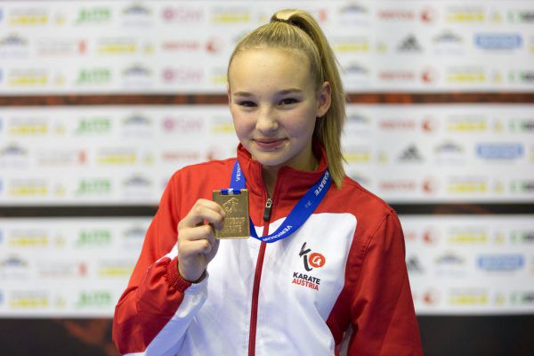 Über zwei Gold- und zwei Silbermedaillen durften sich die Vorarlberger Karateka beim EM-Qualifikationsturnier beim Venice Cup 2017 freuen. Bettina Plank (Kumite -50 kg) und Hanna Devigili (Kumite Cadets +54kg; Foto) siegten in ihrer Kategorie, Kristin Mathis (Kumite U14 +47kg) und Adrian Nigsch (Kum