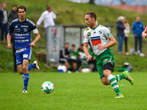 Das Spitzenspiel der Vorarlbergliga zwischen dem FC Lauterach und SW Bregenz bot Spannung bis zur letzten Sekunde. Elvis Alibabic (17.) und Sebastian Beer (Foto, 79.) hatten die Hausherren 2:0 in Führung gebracht, kurz vor Schluss sah Bregenz-Angreifer Daniel Sobkova wegen Beleidigung die rote Kart