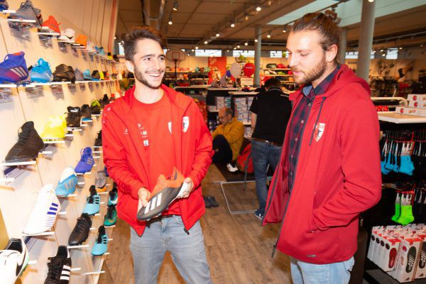Samuel Schwärzler (l.) und Marcel Meusburger vom FC Egg gingen dieser Tage mit dem Intersport-Gutschein im Wert von 250 Euro shoppen – den Egg als erneut größter Zuschauermagnet in der Saison 2018/19 gewann. Aktuell führt Bizau das Ranking an.
