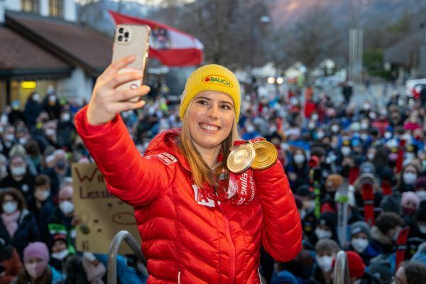 Katharina Liensberger ist wieder zurück in Vorarlberg. Die 24-jährige Olympiasiegerin wurde in ihrer Heimatgemeinde von Hunderten Fans empfangen.