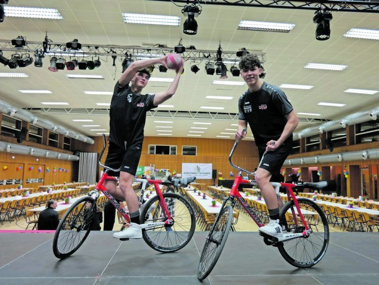 Sie sind gerade einmal 15 Jahre alt, doch die Junioren-Vizeeuropameister Timo Lampert und Max Schallert sind die ganz große Hoffnung für ein neues goldenes Zeitalter des Radballclubs Höchst. Coach Marco Schallert muss die Youngsters immer wieder bremsen.
