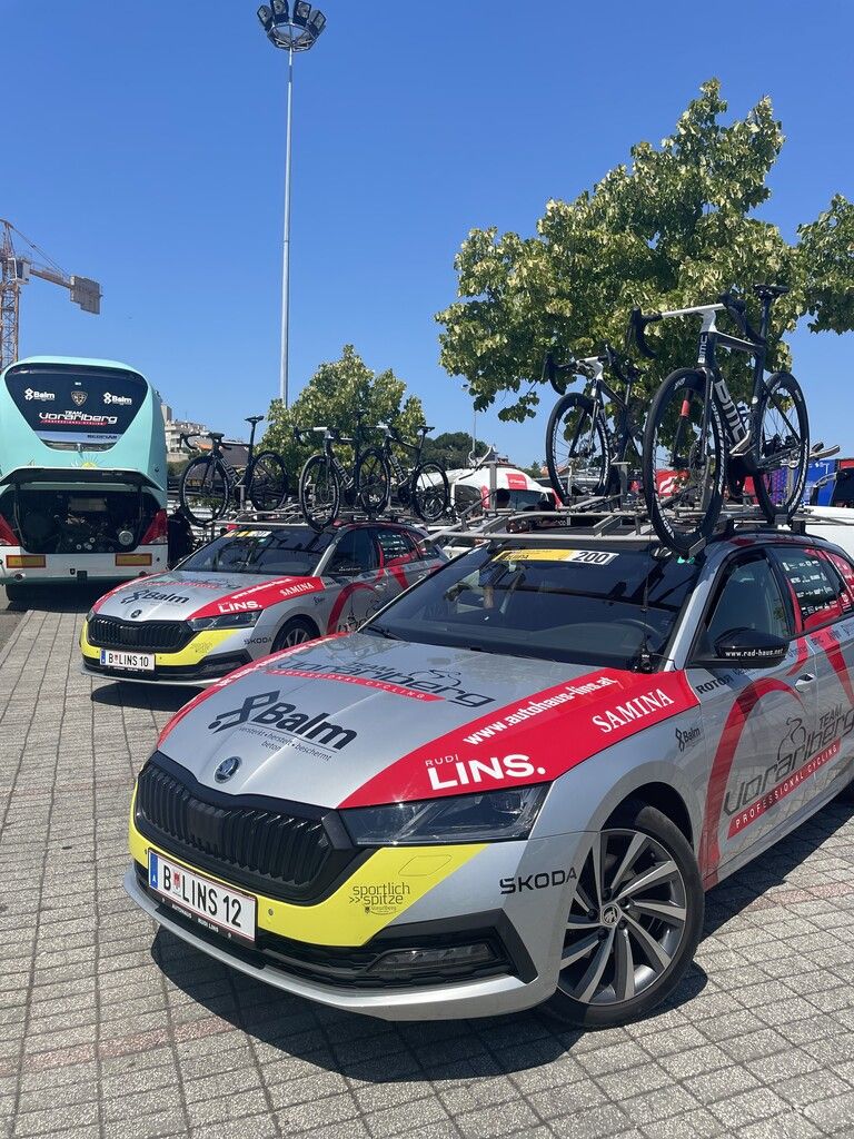 Die fast zweiwöchige Portugal-Rundfahrt stellt das Team Vorarlberg vor große organisatorische Herausforderungen. Die Fahrer und Betreuer können dabei neben den BMC-Rennmaschinen vor allem auch auf die drei Skoda Octavias vom Autohaus Rudi Lins vertraue