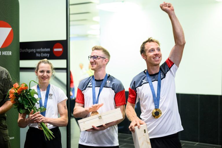 Österreichs Medaillengewinner haben bei ihrer Rückkehr nach Österreich einen gebührenden Empfang erlebt. Auf dem Flughafen Wien-Schwechat wurde es am Montagabend ordentlich laut, als die Familien und jubelnde Fans samt Live-Musik ihre Helden willkommen hießen. Das Golddu