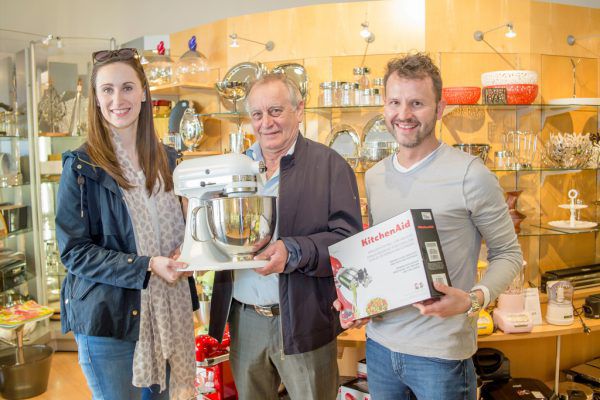 In Vertretung von Gewinnerin Daniela Mathis wurde Herrn Mathis (Mitte) kürzlich eine Kitchen Aid überreicht, der Siegerpreis eines NEUE-Gewinnspiels. Bei der Übergabe waren auch Nathalie Roithinger (NEUE-Marketing) und Frühauf-Geschäftsführer Thomas Frühauf dabei.