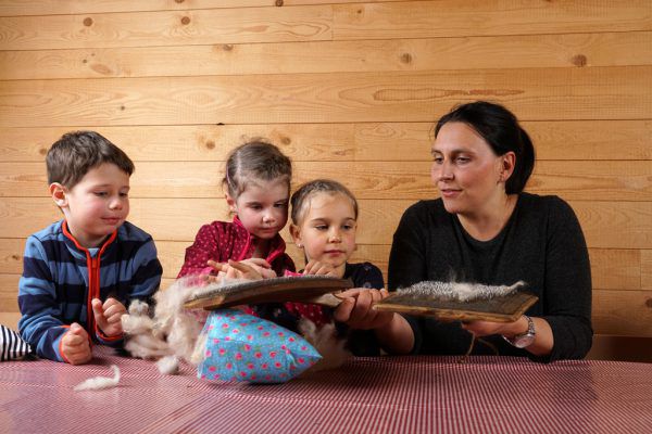Im Rahmen der Kinderveranstaltung „Schaf-Stall-Wolle“ in Au erfahren Mädchen und Buben alles Wissenswerte rund um das Nutztier.