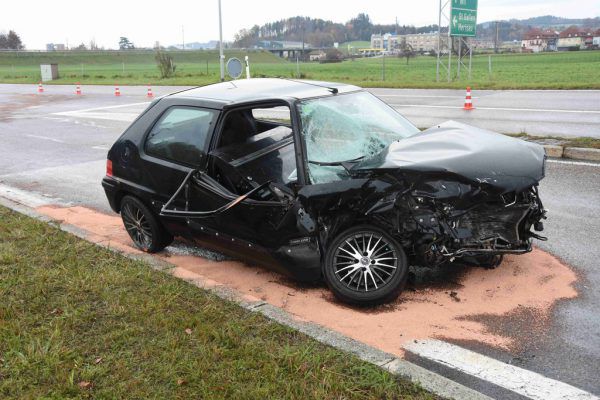 Frontal zusammengestoßen sind zwei Autos am Samstagmorgen auf der Querverbindung zur Autobahn A 1, beim Anschlusswerk Gossau. Beim Unfall wurden zwei Frauen schwer, zwei Kinder und ein Mann offenbar leicht verletzt. Beim Abbiegevorgang war das Auto der beiden Frauen in den entgegenkom