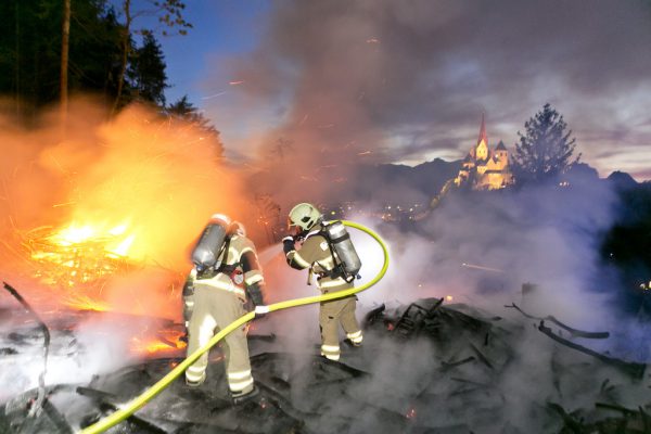 Gerodete Äste sind am Dienstagabend in einem Wald im Bereich des Pfarrschrofens in Rankweil in Brand geraten. Die Feuerwehen Rankweil und Zwischenwasser waren im Einsatz, um den gemäß Polizei etwa 10 mal 20 Meter großen Brand auf einer Lichtung zu löschen. Ein Übergreifen des Feuers a
