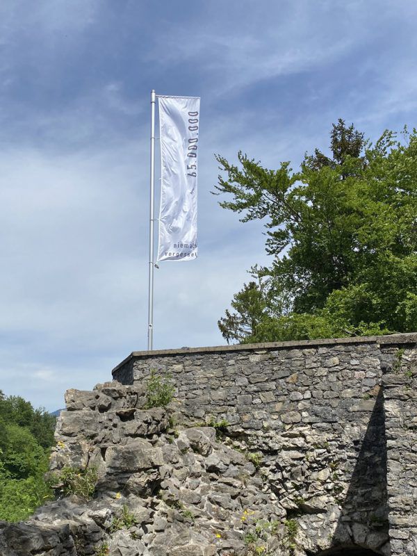 Anlässlich der Kapitulation und des Endes des Zweiten Weltkriegs vor mittlerweile 75 Jahren weht auf der Burgruine Alt-Ems in Hohenems eine weiße Fahne.