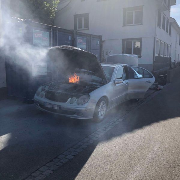 Am Dienstagnachmittag ist einer Patrouille der Kantonspolizei St. Gallen in St. Margrethen (CH) ein brennendes Auto aufgefallen. Die Beamten konnten mit einem Feuerlöscher den Brand bereits leicht eindämmen. Die anschließend eintreffende Feuerwehr brachte das Feuer schließlich ganz unter Kontrolle.