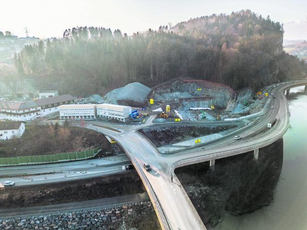 Beim Mammutprojekt Stadttunnel Feldkirch wird derzeit an zwei Fronten gearbeitet. Während die Tunnelbauer im Stadtteil Tisis den zweiten Erkundungsstollen in den Berg treiben, wird in der Felsenau jede Menge Felsgestein aus dem Weg geräumt, um Platz für eine Radu