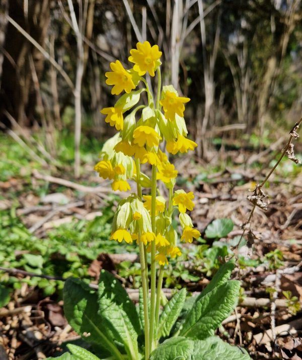 Echte Schlüsselblume (primula veris), Primel oder auch Himmelschlüssel genannt kann 8 bis 30 Zentimeter hoch werden. Blütezeit ist von Februar bis Mai, die Laubblätter sind grundständig als Rosette angeordnet. Sie überwintert mit einem kurzen dicken Rhizom. Der Name bezieht sich auf die Form der Pfl