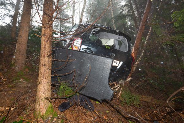 Etwa 100 Meter ist am Donnerstagabend gegen 17.40 Uhr ein Pkw in Dünserberg über einen steilen Wiesenhang abgestürzt. Der 18-jährige Lenker wurde über eine Wiesenkante etwa 20 Meter in den Wald katapultiert und kam dort zwischen den Bäumen schließlich zum Stillstand. Laut Polizei war die vermutliche