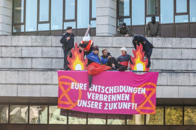 Auch vor der gestrigen Landtagssitzung gab es eine Aktion von Aktivisten und Aktivistinnen von Extinction Rebellion.