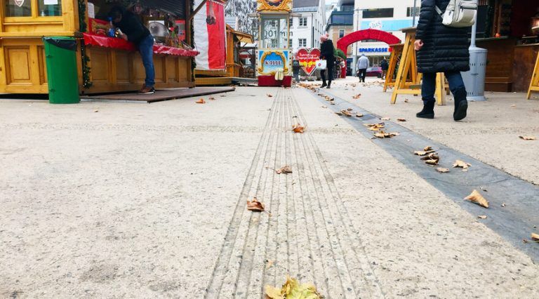 Von 15. November bis 23. Dezember findet der Bregenzer Weihnachtsmarkt am Kornmarktplatz statt. In der Zeit wird ein Ersatzblindenleitsystem eingerichtet, weil das dortige taktile Bodenleitsystem (Bild) teilweise beeinträchtigt ist.