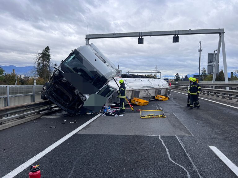 Aus noch unbekannter Ursache verlor am Dienstag kurz nach Mittag auf der A 14 der Fahrer eines Lkw die Kontrolle über sein Fahrzeug. Auf Höhe der Abfahrt Bregenz Richtung Pfändertunnel kollidierte er mit einem Fahrbahnteiler und schlitterte über 20 Meter weiter, bevor der