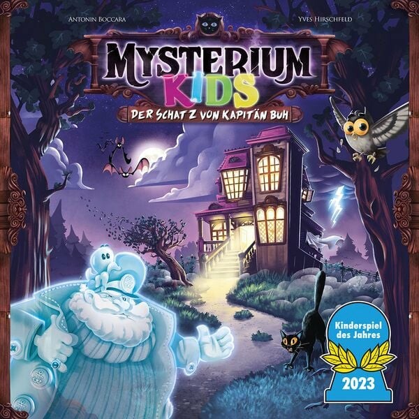 Mysterium Kids ist das Spiel des Jahres 2023. Die Kinderversion der Vollversion steht dem Original in nichts nach, meint Manuel Lebar. Das Besondere an dem Spiel: Es wird nicht gegeneinander, sondern miteinander, gegen das Spiel gespielt. Es liegen Karten auf dem Spielfeld, auf denen Symbole ab