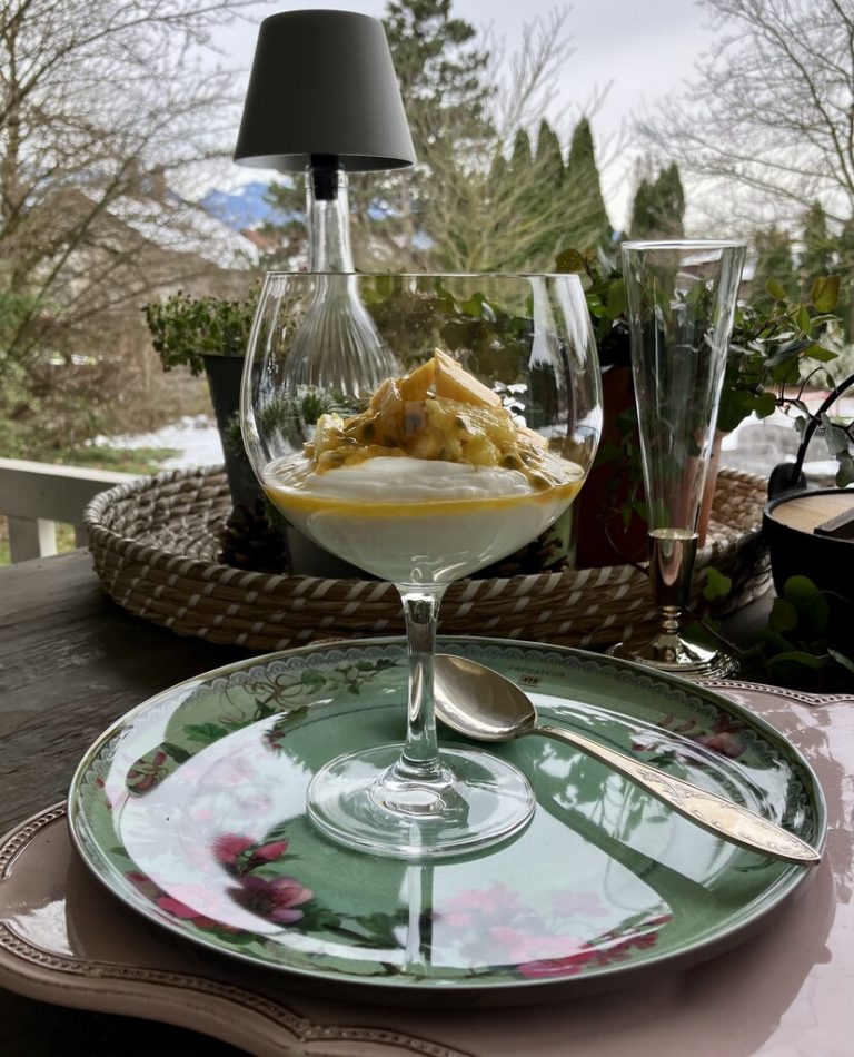 Dessert: Kokos-Joghurtcreme mit Früchten