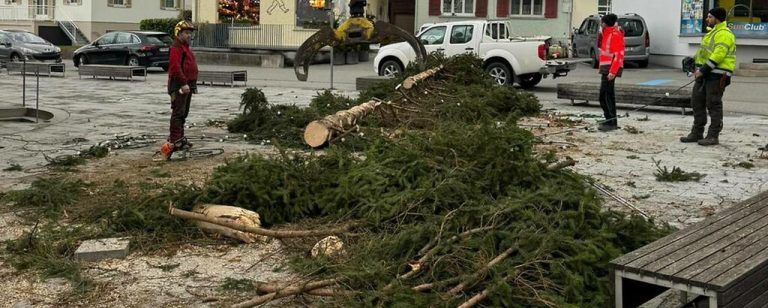 In Götzis gibt es in diesem Jahr zum Heiligen Abend keinen öffentlichen Christbaum mehr. Der vor dem Jonas-Schlössle stehende Baum ist in der Nacht auf Samstag dem Sturm zum Opfer gefallen. Bauhofmitarbeiter mussten ihn noch vor dem Fest abtransportieren. Für einen Ersatz ist