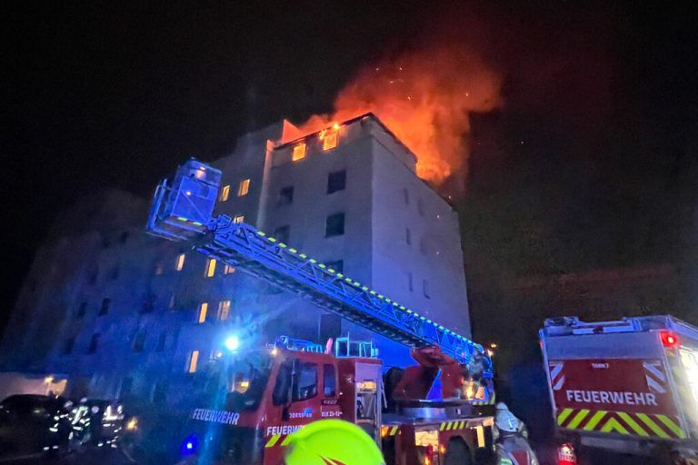 Einen Großeinsatz gab es für rund 100 Einsatzkräfte der Feuerwehr sowie 40 Beteiligte von Rotem Kreuz und Polizei Freitagfrüh in Dornbirn. Auf der Dachterrasse eines mehrstöckigen Hauses in der Arlbergstraße war aus noch ungeklärter Ursache ein Brand ausgebrochen. Etwa 3
