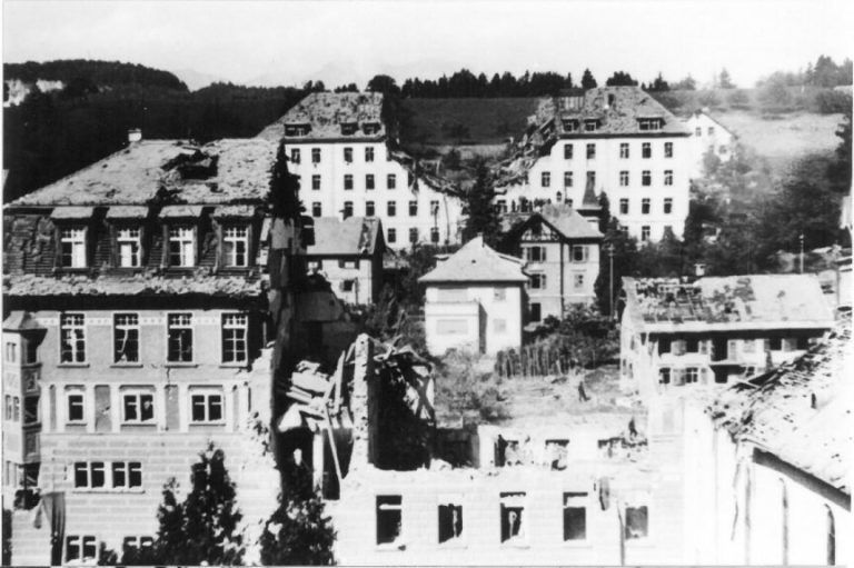 Am 1. Oktober 1943 gegen 13.30 Uhr warfen 35 alliierte Bomber innerhalb von zwei Minuten 18.000 Kilogramm Bomben über die heutigen Stadtteilen Tisis und Tosters ab. Bei diesem verheeren
