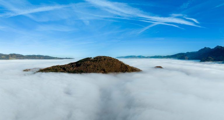 Nur die „Spitze“ des Kummenbergs ragte gestern Vormittag aus der Nebeldecke. Im Laufe des Tages kam dann immer mehr die Sonne durch. Im Unterland hielt sich der Nebel jedoch hartnäckig. Stiplovsek