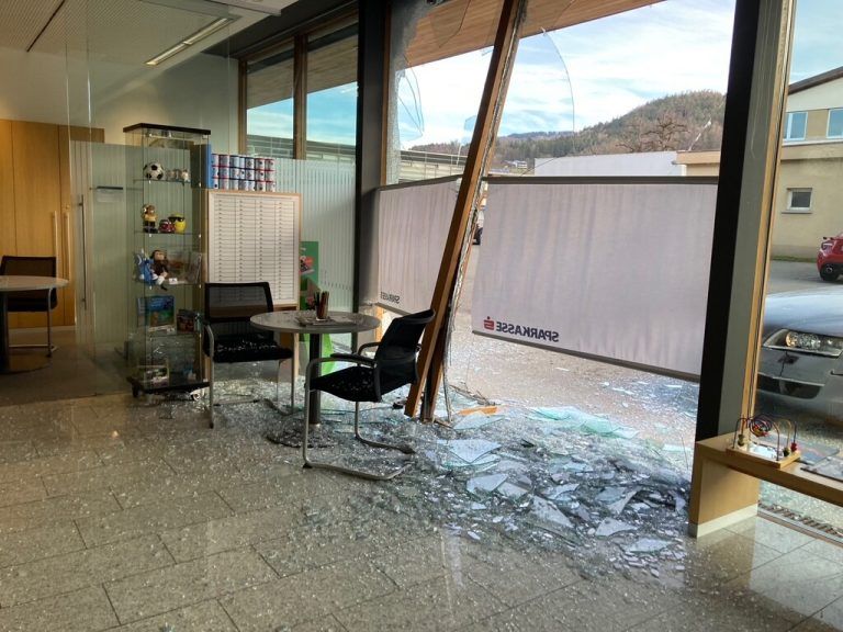 Am Dienstag hat in Sulz ein 58-jähriger Autofahrer sein Fahrzeug vor einer Sparkassenfiliale geparkt. Weil der Mann vergaß, die „Park-Stellung“ bei seinem Automatik-Fahrzeug einzulegen, rollte es in Richtung der Bank und krachte später durch die Scheibe. Das Holzstützele