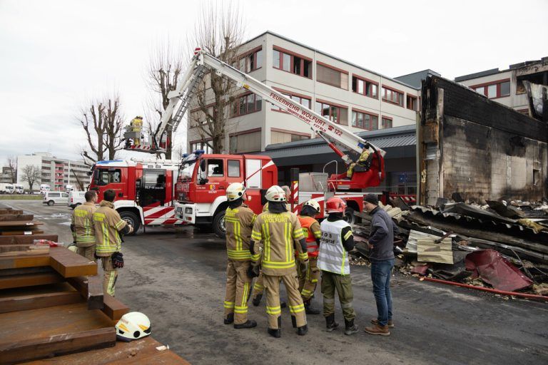 Bei dem Batteriehersteller, bei dem es erst Anfang der Woche zu einem Großbrand gekommen war, loderte es im Rahmen der Abbrucharbeiten am gestrigen Mittwoch schon wieder. Das Feuer richtete dabei keinen weiteren Schaden an und war schnell unter Kontrolle.