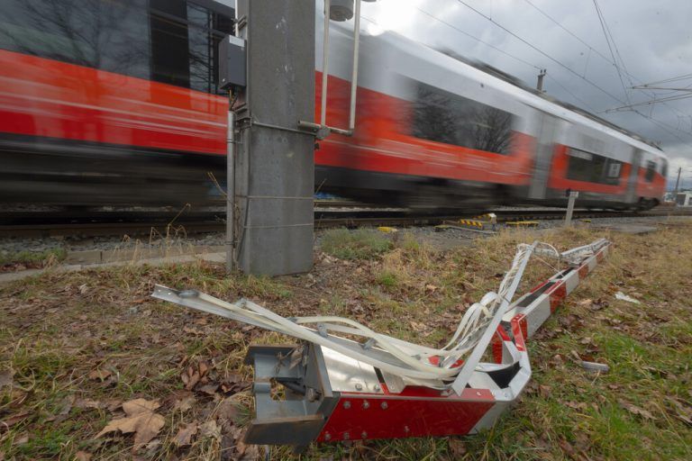 Weil ein Lkw den Bahnübergang beim Bregenzer Milchpilz noch querte, als die dortige Schranke sich bereits schloss, wurde Letzere am Montagmorgen beschädigt. Die Schranke wurde abmontiert und ersetzt, die Züge mussten derweil vor dem Übergang stehenbleiben und einen Signal