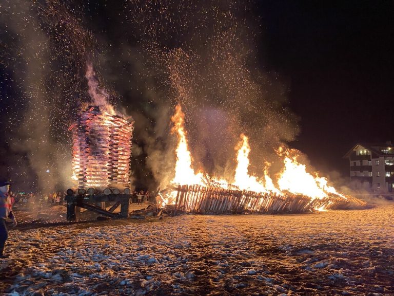 In Gaschurn ist der Funken umgestürzt. Verletzt wurde niemand. Nun wird diese Woche die Hexe mit Trauermarsch zu Grabe getragen.