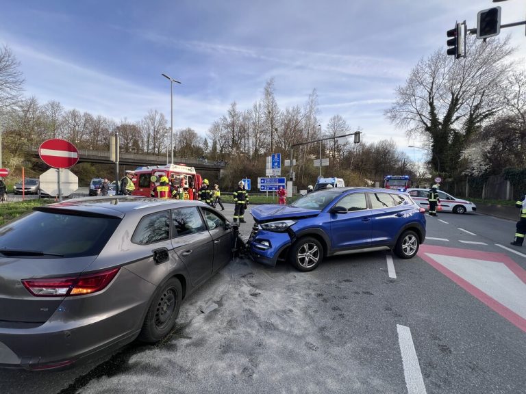 Am Dienstag kam es auf der L 202 in Bregenz zu einer Kollision, als ein Pkw von Hard in die Bregenzer Innenstadt unterwegs war und zur selben Zeit ein anderer Lenker in Richtung Citytunnel abbiegen wollte. In den Fahrzeugen befanden sich jeweils zwei Personen, ein Insasse wurde leicht verletzt.