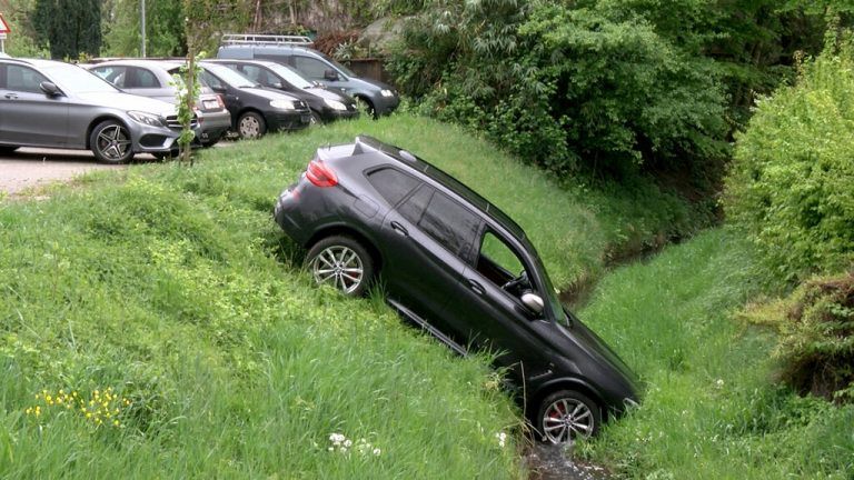 Ein Einparkversuch endete in Lustenau gestern unglücklicherweise im Graben. Die vier Schweizer Insassen bedienten laut Angaben der Polizei einen Pkw falsch, dieser rollte deswegen in einen Bach. Dabei wurde keiner verletzt, das Auto blieb fahrtüchtig. Der ÖAMTC barg das Fa