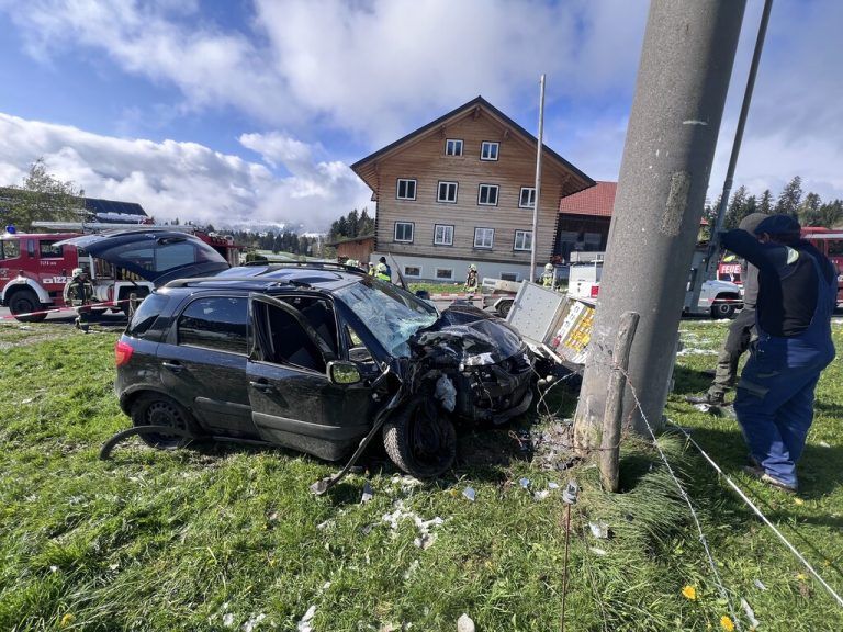 Ein Pkw-Lenker kam am Donnerstagnachmittag am Weg von Langenegg nach Krumbach bei einem Überholmanöver von der Straße ab. Er touchierte einen Verkehrspfosten und einen Zaun und fuhr in einen Strommast. Dort blieb er dann stehen. Er wurde unbestimmten Grades verletzt. Ein nach