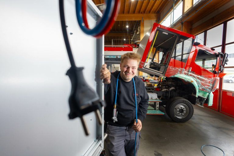 Aron Furxer arbeitet bei Walser Fahrzeugbau und baut Einsatzfahrzeuge für Feuerwehren.