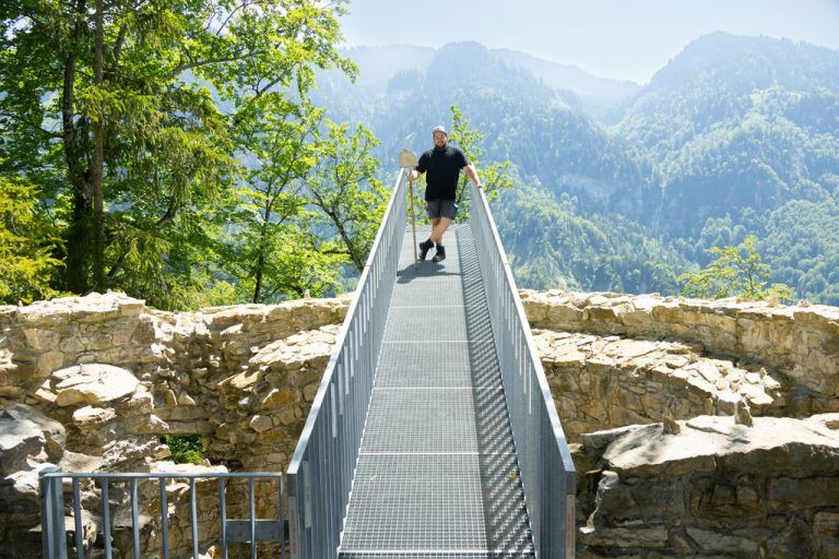Erik Winkler hat derzeit einen sehr besonderen Arbeitsplatz. Er saniert die Burgruine Alt-Ems.