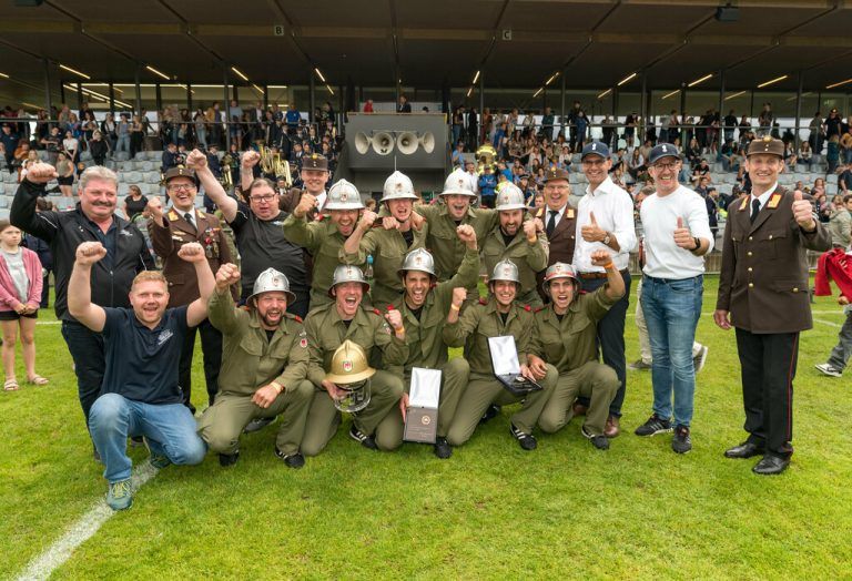 Beim Landesfeuerwehrfest im Lauteracher Bruno-Pezzey-Stadion gingen gestern die Finalbewerbe über die Bühne. Zum ersten Mal sicherte sich die Feuerwehr Düns den Goldenen Helm, auf den Plätzen zwei und drei landeten die Feuerwehren aus Sibratsgfäll und Bezau. Bei der